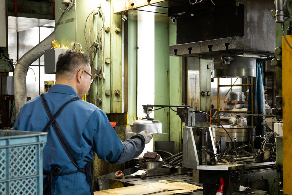 ↑新潟県三条市にてステンレス製鍋の製造現場を取材させて頂いた時の写真。