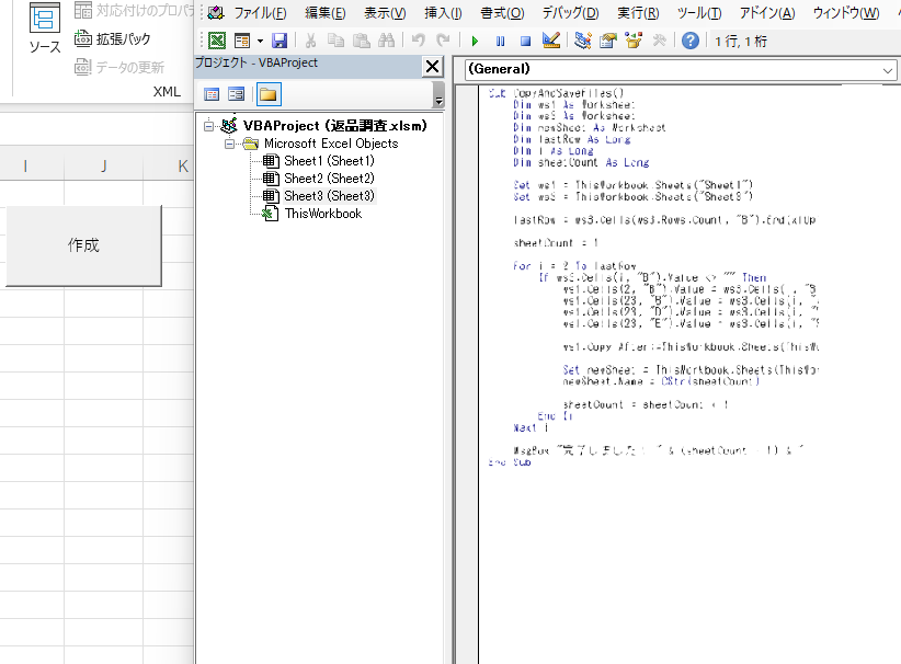 その後、私自身も研修で学んだ内容を活かし、業務の合間の限られた時間を使ってVBAの開発を継続しました。
